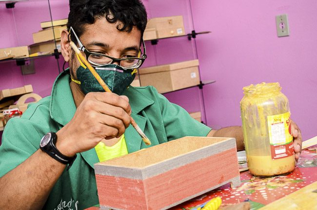 O ensino dessas técnicas é totalmente individualizado, respeitando as limitações e necessidades de cada um. Cada etapa do processo é feita por um atendido, então cada caixinha que fica pronta está recheada de muito carinho e dedicação de várias pessoas.